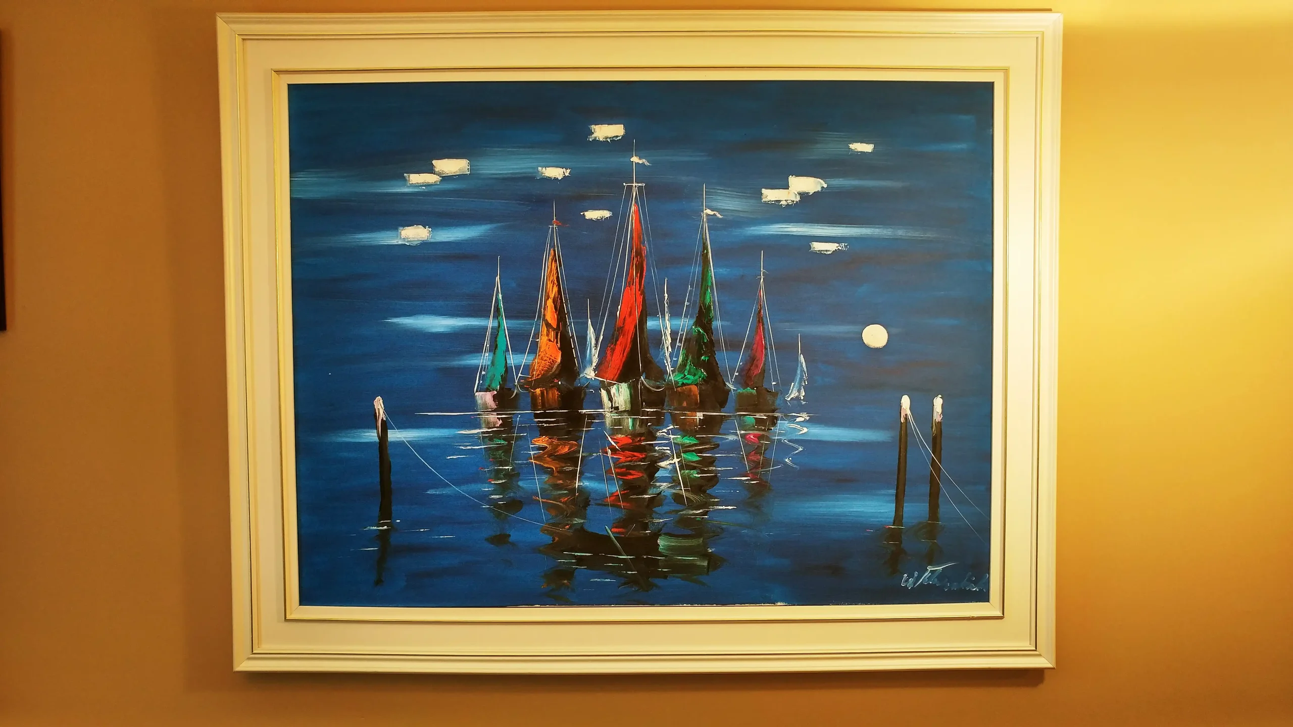 Immense toile Walter Klapschinski bateaux / Huge painting Walter Klapschinski boats