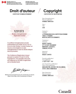 Roger-Luc Chayer (Image: Certificat de droit d’auteur OPIC #1231373) Ce matin, le 6 mars 2025, j’ai acheté les USA...