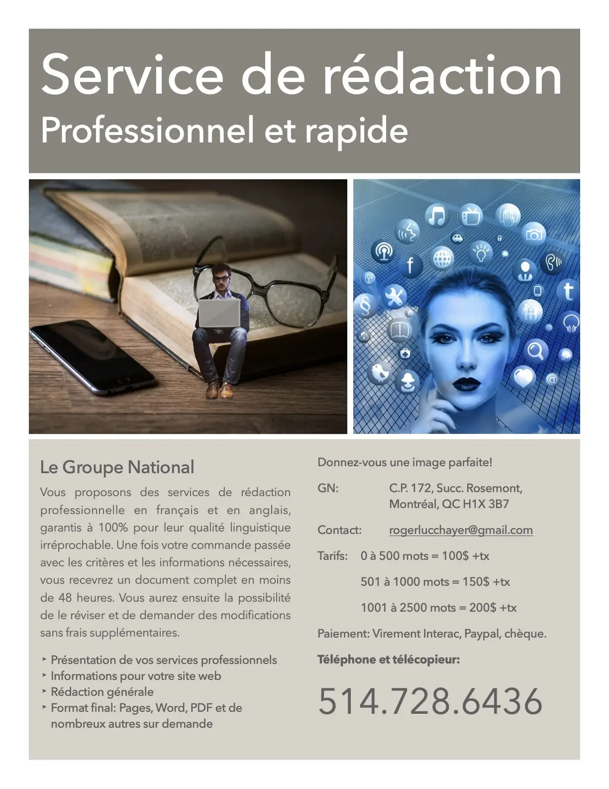 Service de rédaction professionnelle et rapide – Le Groupe National